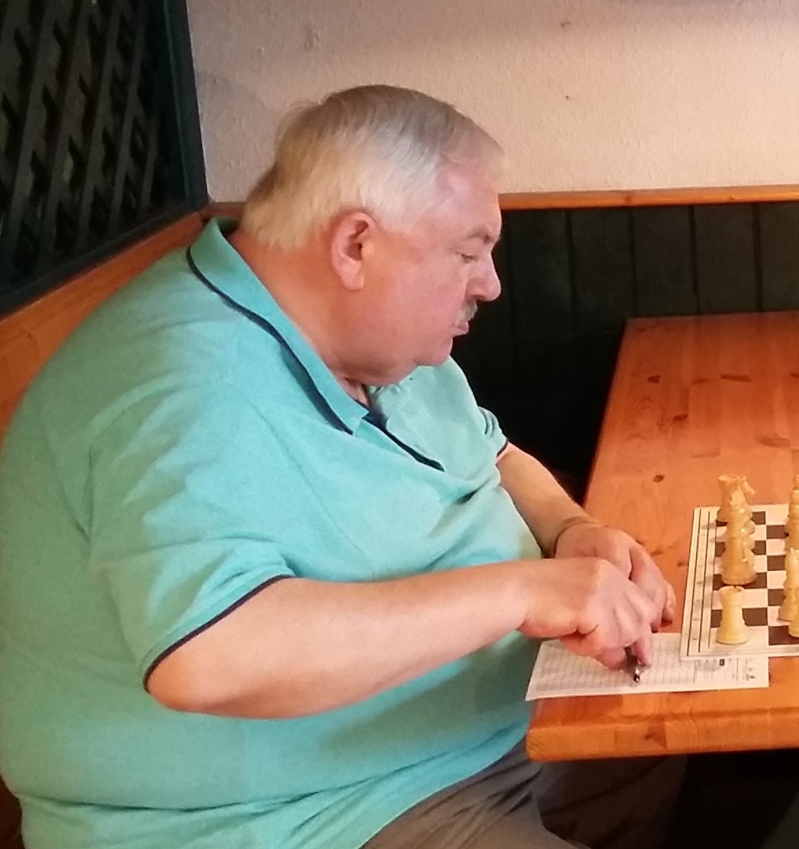Irgendjemand muss doch schuld an dieser Hitze sein! Nahezu unerträgliche Wetterbedingungen lassen im leider nicht klimatisierten Rathaussaal von Halberstadt eigentlich gar keine sportlichen Höchstleistungen zu. Das dachten sich offenbar auch Klaus Bärthel und Manfred Schütze in Runde 2 der Meisterschaft. Mit kräftiger Mithilfe ihrer Gegner beendeten sie nach 9 bzw. 10 Zügen erfolgreich ihren „Arbeitstag“. Dr. Hamm benötigte zum Sieg 17 Züge. Aber nicht alle konnten so schnell die „Schach-Sauna“ verlassen. Zahlreiche umkämpfte Partien waren durchaus die Regel.